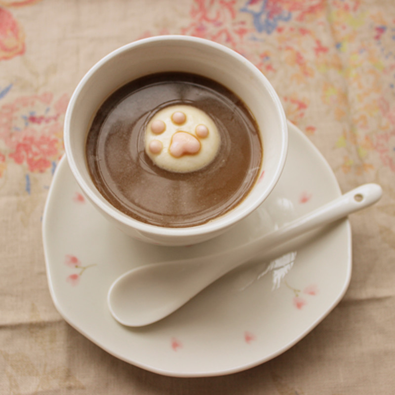 ★推薦理由:光是看著小肉球,放在熱乎乎咖啡或者巧克力里,一點(diǎn)點(diǎn)慢慢融化,簡直整顆心都要化了。這款棉花糖還有可供燒烤的貓腕型棉花糖,烤過的棉花糖和餅干一起超美味。
