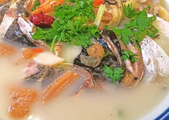 八寶燉魚(yú)頭是一道薄山湖名菜,此菜燙汁奶白、肉質(zhì)鮮美。