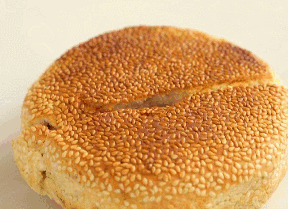 登封本地人最愛的就是焦蓋燒餅,正宗的焦蓋燒餅表面撒滿芝麻,外面焦黃酥脆內(nèi)層松軟,一半死面一半發(fā)面和成面團下成劑子,蘸上油鹽五香粉等調(diào)料后包制成餅,壓制成型后再經(jīng)過刷水蘸芝麻,餅的雛形就呈現(xiàn)出來了。