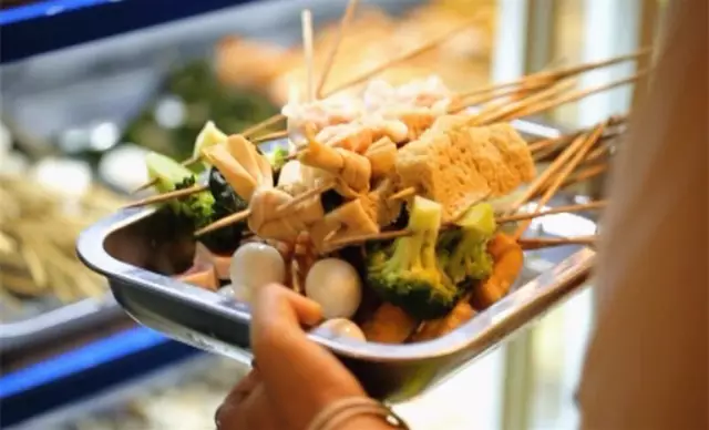 與我們常吃的串串不同,這里的串串居然都是提前煮熟,放涼之后整整齊齊串在竹簽上,吃的時候在料湯里泡一下就行。