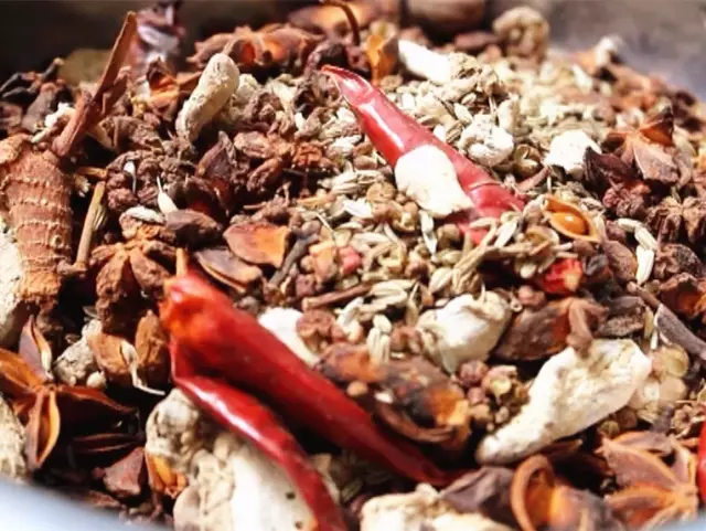 第一步就是清洗肉類,清洗的程度也影響鹵肉的口感,不過(guò)一天就要洗三四百斤的肉,這可是個(gè)不輕的體力活,直徑1.5米的大鍋中是老湯,眼前這鍋老湯已經(jīng)用26年了,散發(fā)著撲鼻的肉香味鹵香味,依次放入洗凈的肉塊和大料,除了常見(jiàn)的八角花椒良姜等,辣椒姜片的加入也增加了口感。