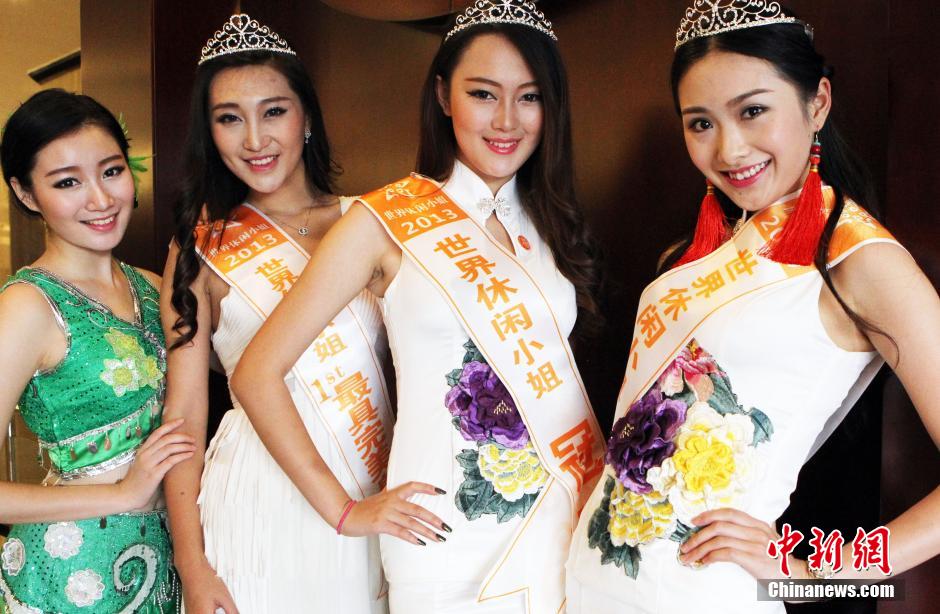 5月28日,第三屆中國(北京)國際服務(wù)貿(mào)易交易會在北京召開。為促進文化產(chǎn)業(yè)與投融資機構(gòu)的項目對接,中華文化投融資聯(lián)合會與世界休閑小姐大賽組織舉行戰(zhàn)略合作伙伴簽約儀式暨2014世界休閑小姐大賽啟動儀式在京交會上舉行。圖為世界休閑小姐大賽獲獎佳麗亮相京交會。中新社發(fā) 錢興強 攝