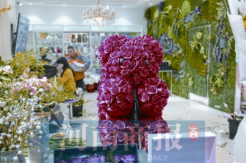 商戶陳玉稱,七夕的主角還是紅玫瑰?!叭ツ炅餍小П啊?,今年流行‘抱抱熊’。”商戶何艷威稱,“抱抱熊”是用紅玫瑰制作的,這種玫瑰不是鮮切花,而是皂花,幾乎和真玫瑰一樣,但比真花更耐放,只要不碰水,能放兩年左右。