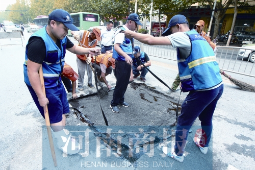 臺風“天鴿”讓鄭州下了幾天的雨,許多道路積水塌方車輛陷進去。中央氣象臺預報臺風“帕卡”已經登陸南方,受其影響鄭州又將面臨幾天的降雨,道路養(yǎng)護工們要趕在降雨前修復路面坑槽,預防各種危害的發(fā)生。